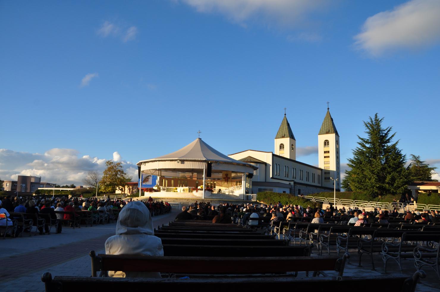 Das Leben in Medjugorje dreht sich nur um die Pilger, die aus ganz Europa und Übersee anreisen. Vierzig Millionen, heisst es, hätten seit den 1980er Jahren zur „Gospa“ (auf kroatisch „Dame“) gebetet. Die zentrale Jakobskirche wird seit 1981 immer wieder erweitert. Vor dem überdeckten Aussenaltar finden 10000 Gläubige Platz. Daneben die Beichtstühle, in denen Pilger in allen Sprachen ihrem Gewissen Erleichterung verschaffen.